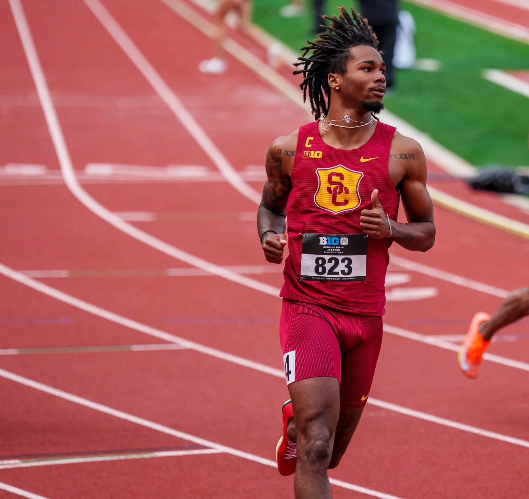 2025 NCAA Champion in 100m and 4×100m for University of Southern California. School record holder for 60m. Big Ten Jackie Robinson Community & Impact Award recipient.
